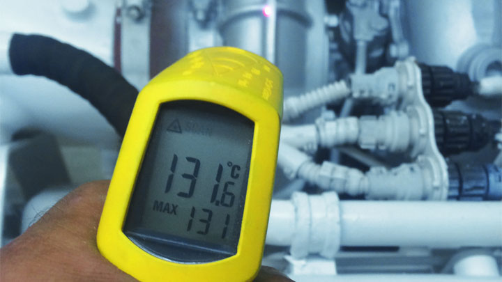 با استفاده از تفنگ درجه حرارت مادون قرمز، نقاط داغ یا نقاط محدودیت در سیستم خنک کننده را بررسی کنید. اطمینان حاصل کنید که کاهش قابل توجه دما در سراسر رادیاتور نیز مشهود است.